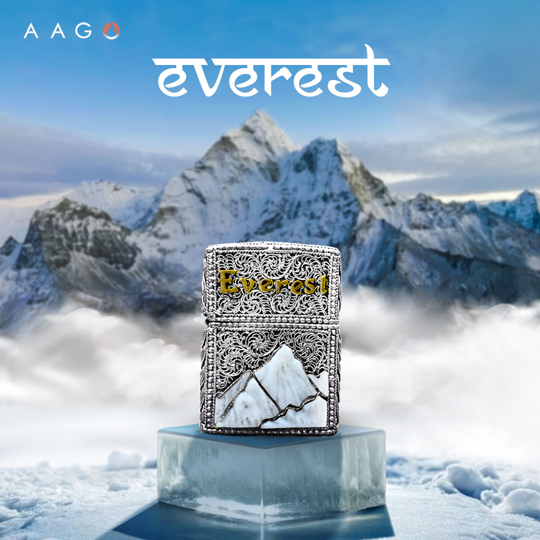 An ode to the Himalayas, this handcrafted lighter features Mount Everest in stunning silver filigree. It reflects the spirit of strength, serenity, and sky-high craftsmanship.
